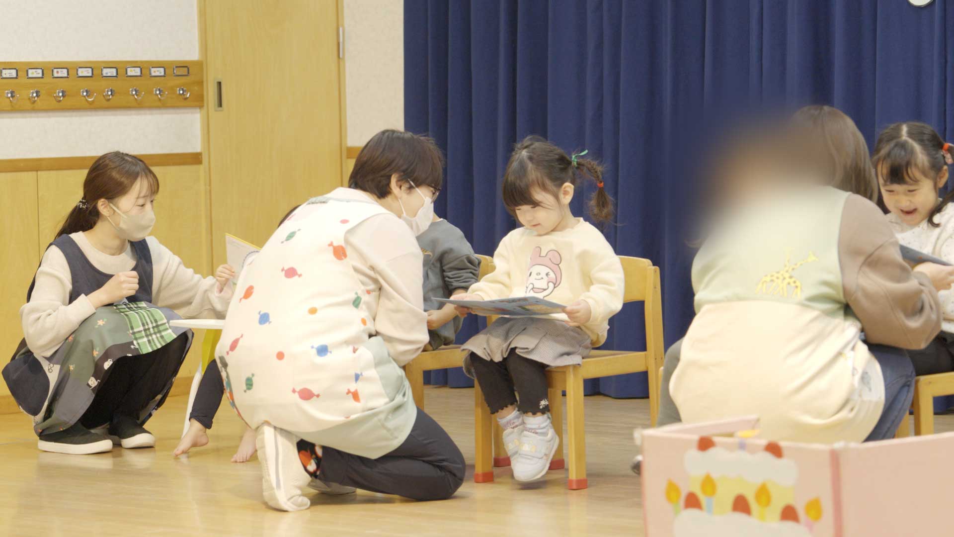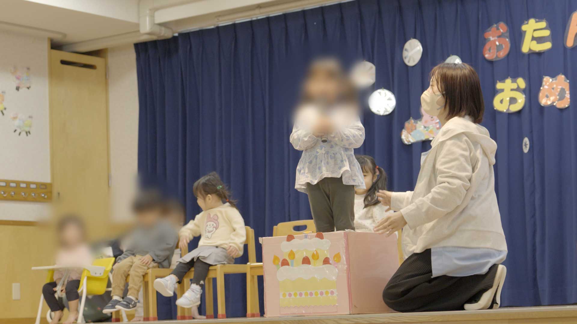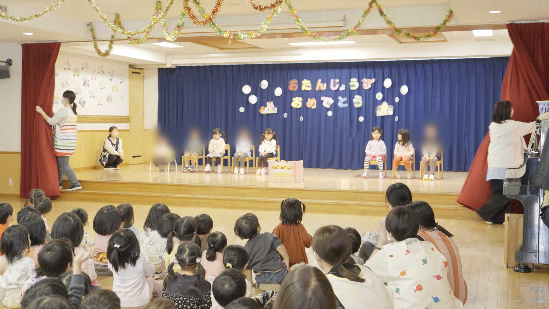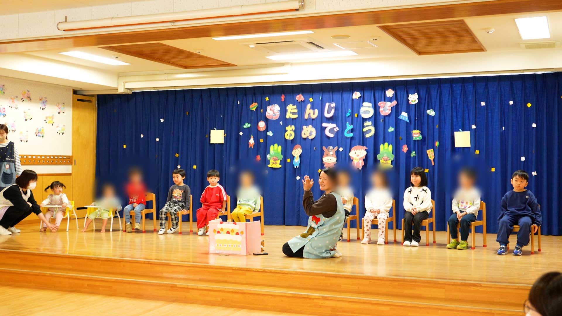 おともだちや先生たちにお祝いされ、11月生まれのおともだちがうれしそうな表情を見せてくれました。