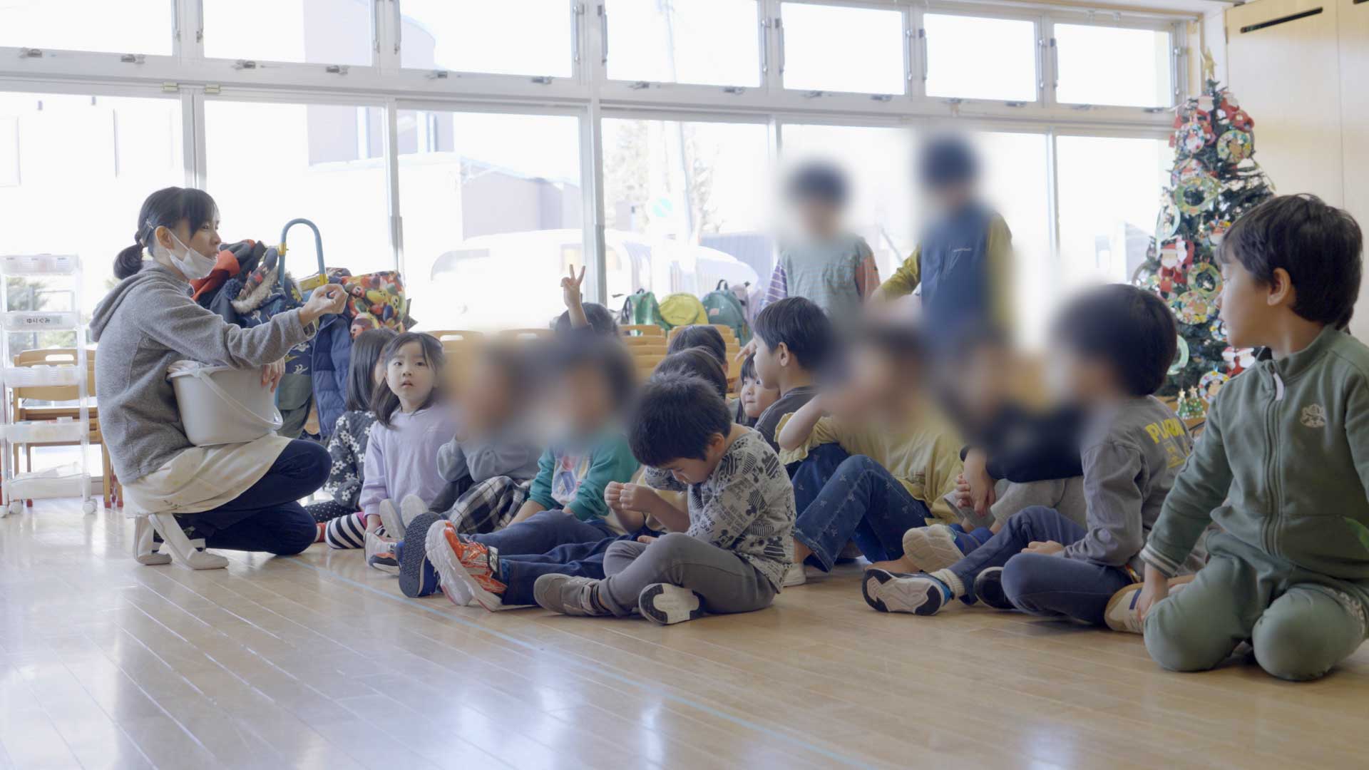 札幌北保育園にサンタさんがプレゼントを配りに来てくれてみんな大喜び。